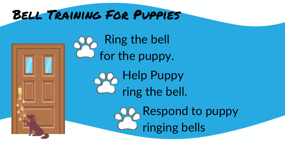 From day one, as you take your puppy to the back door to potty, you will ring these bells, then toss a treat outside (this also helps puppy learn to go quickly to and OUT of the back door) for your puppy to sniff around and find (and as a bonus, sniffing triggers peeing!).