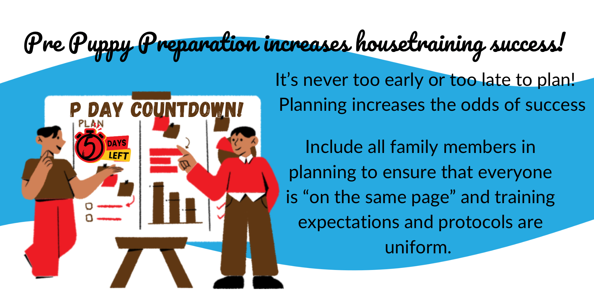 Planning ahead is one of the easiest ways to increase success of your house training efforts. But don't worry if you already have your puppy, it's never too late to sit down and plan your house training goals, everyone's responsibilities, and how this work will be accomplished.