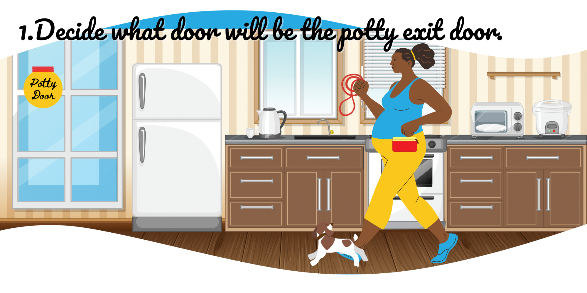 Using the same door for potty breaks will more quickly teach the puppy how to find the door to the outdoor toilet. If using a litter box create your litter box area near the potty door too.