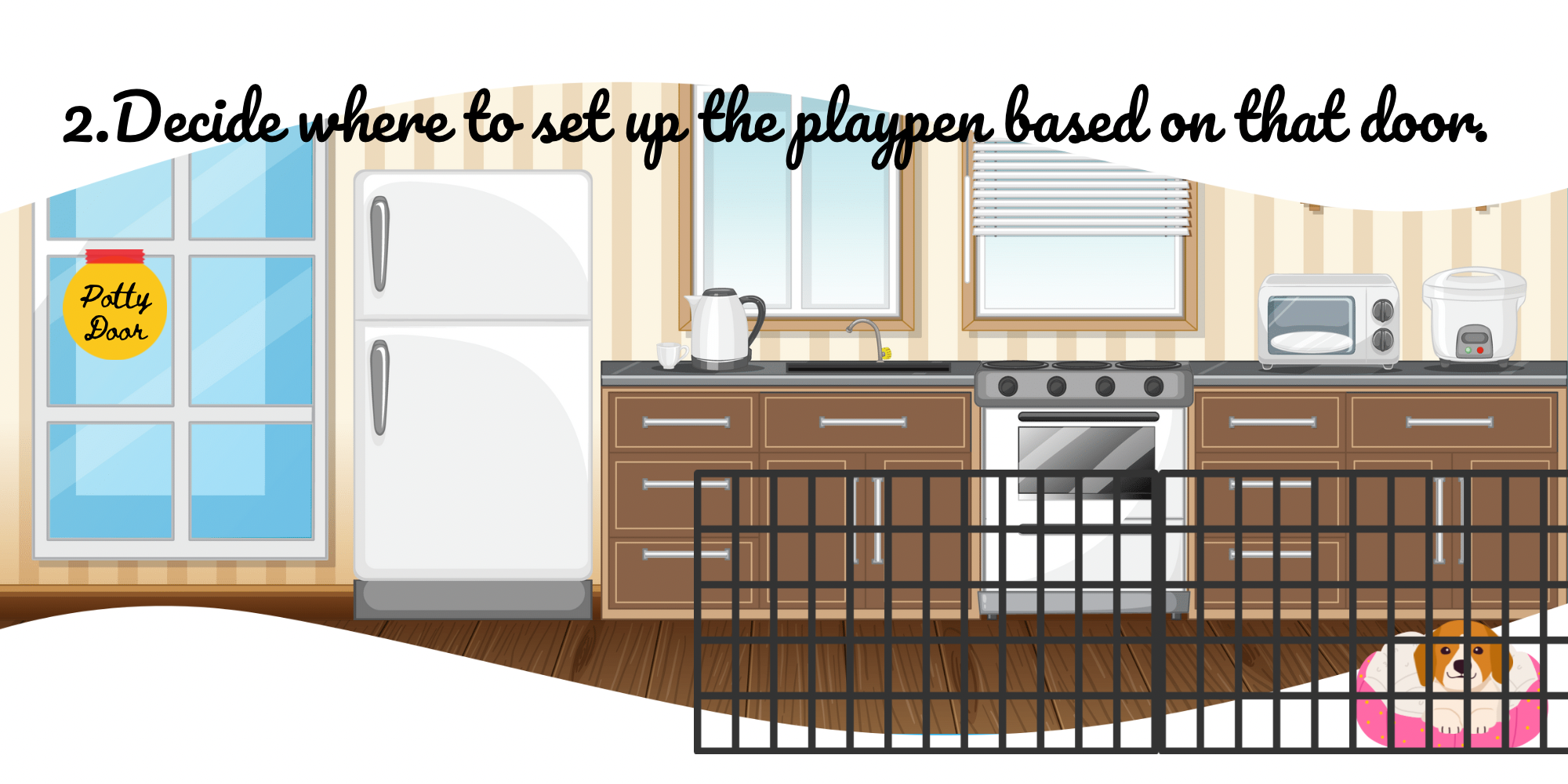 The day pen should be set up near the potty door at first. Young puppies cannot hold it for long runs to the door!