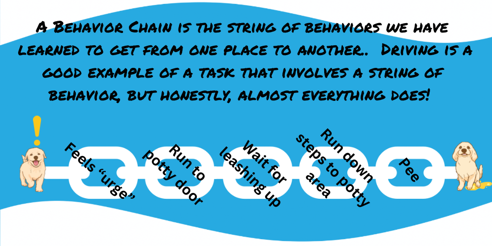 Most of these behaviors will be reinforced as part of a long stream of behaviors called a Behavior Chain.
