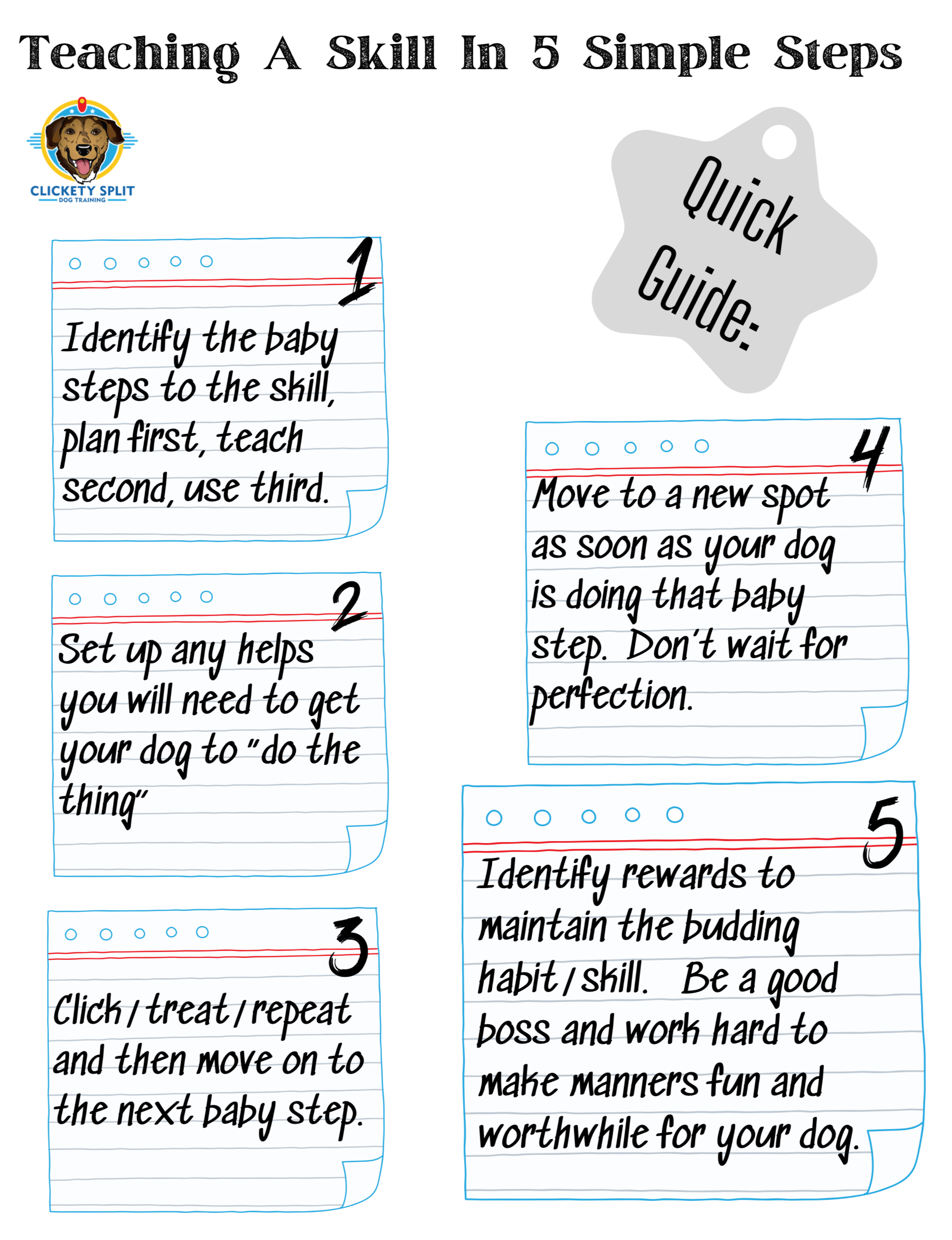 The entire process takes just about 3 minutes and look at all the behaviors we are teaching our puppy to do!