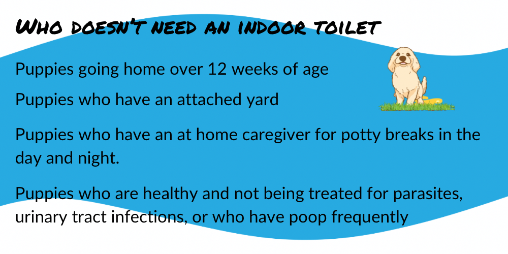 Additionally, Puppies whose owners plan to use a litter box long term, or who can see a need for an extreme weather toilet area at some times.