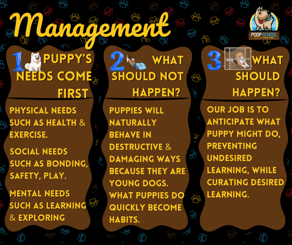 There are three rules of management when house training puppies.