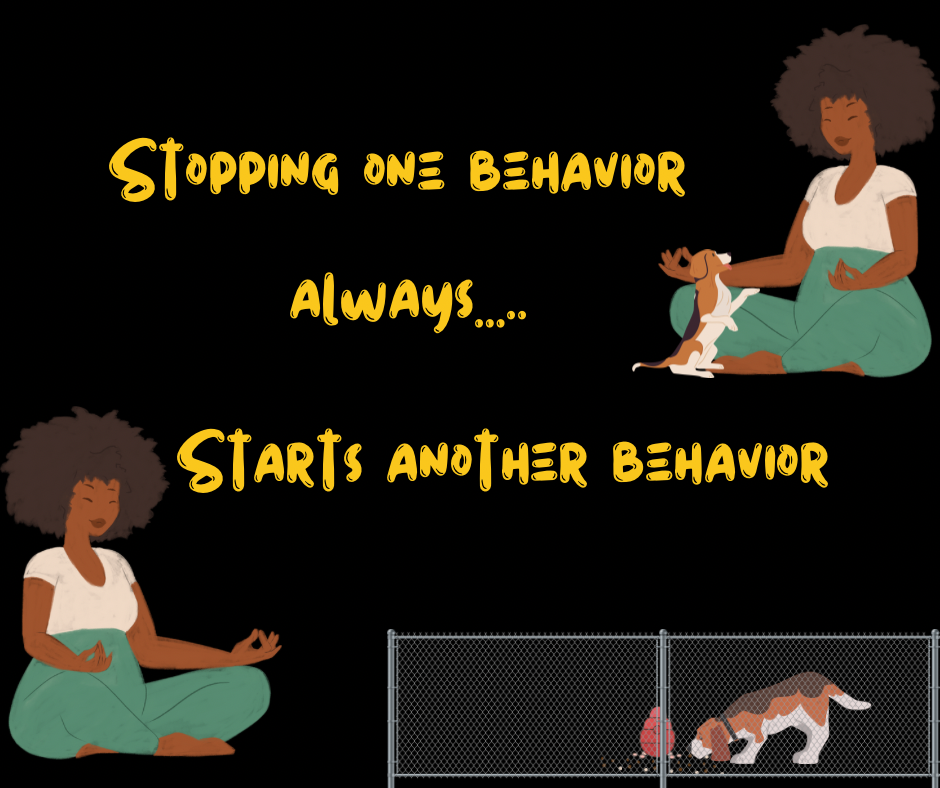 Since our puppies are behaving constantly, It only follows that if we prevent our puppy from doing one behavior, it will by default do another behavior.