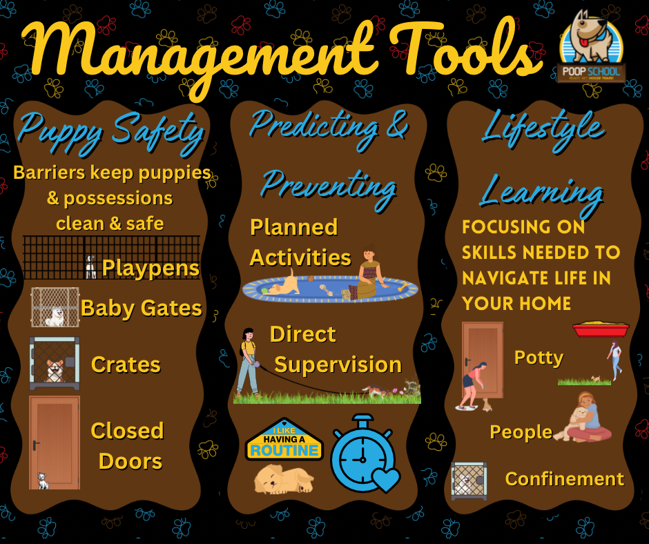 Almost all effective house training will involved several different types of management tools and techniques. Tools like baby gates, playpens, closed doors, and crates are hugely helpful. Also helpful are techniques like direct supervision (no distractions!), curated activities when confined, and predictable routines.