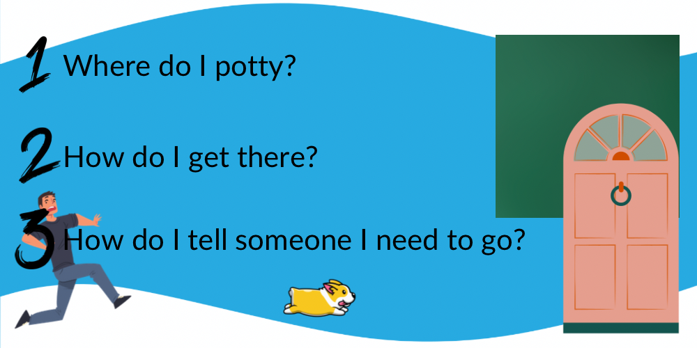 Your puppy literally doesn’t know it needs to potty until seconds before it’s actually going to HAVE to potty. It does not have time to run frantically around to find the door, and then hope someone notices! This is why puppies run frantically around before an accident. They have no idea where they are supposed to go.